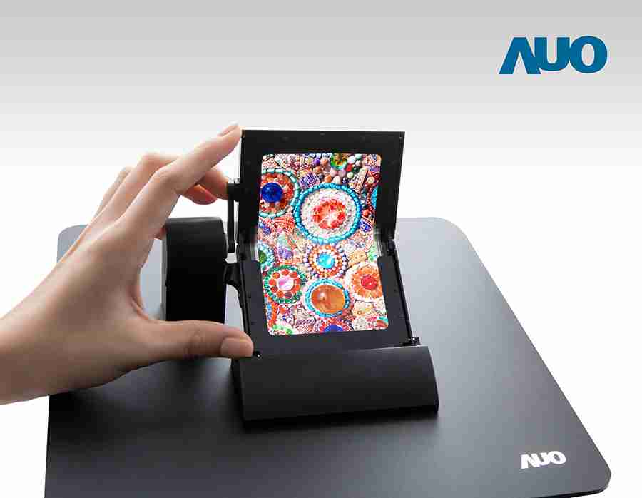 28国际也将展出两款可挠式 AMOLED 显示技术,,采用塑料基板制程,,,,透过特殊的显示屏叠构设计,,实现可折叠、、、、可卷曲的多种型态应用。。5寸折叠式 AMOLED 触控屏,,整合独家设计的可挠式触控传感器,,,,在折叠半径达 4 毫米下,,仍能展现优异画质。。。。5寸可卷曲 AMOLED 显示屏,,,面板薄度仅有 0.1 毫米,,,重量仅有 5 公克,,,可实现卷曲半径达4毫米并具备超广色域的优异色彩表现。。。